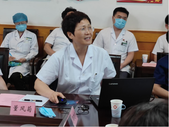 医院主管副院长董凤菊详细介绍医院概况、教学工作、科研工作以及医院模拟实训室建设等情况。